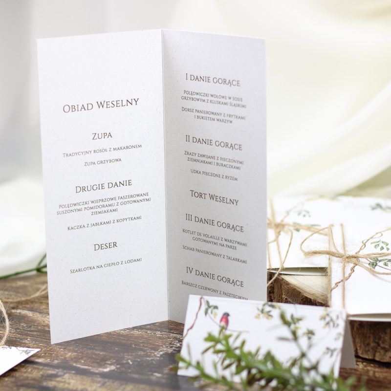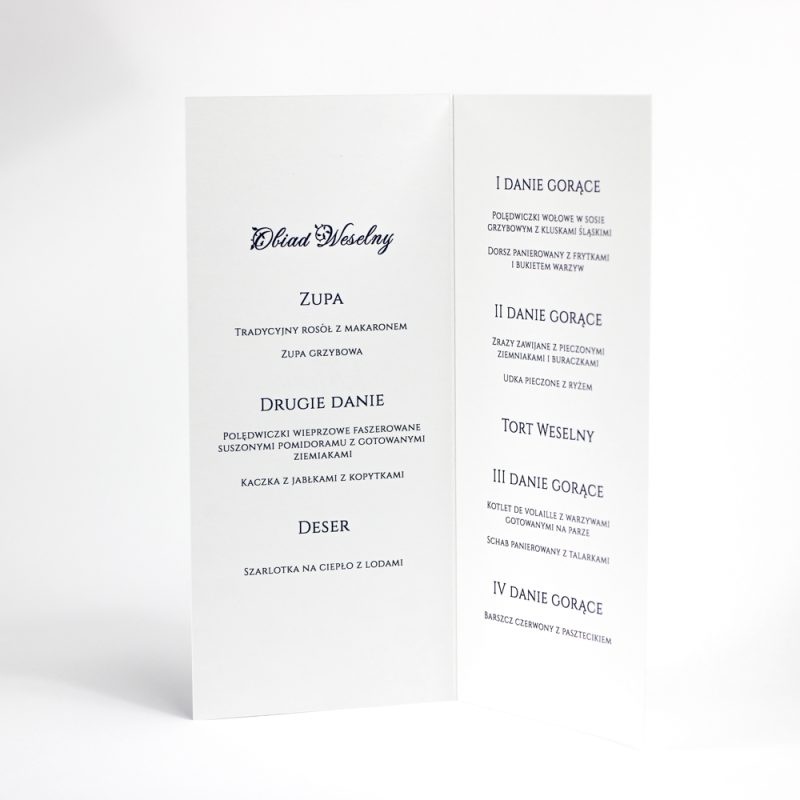 Menu weselne w stylu dworskim z kolekcji Eloise – śmietankowy, gładki papier, i klasyczna minimalistyczna typografia. Elegancja i romantyzm w jednym.