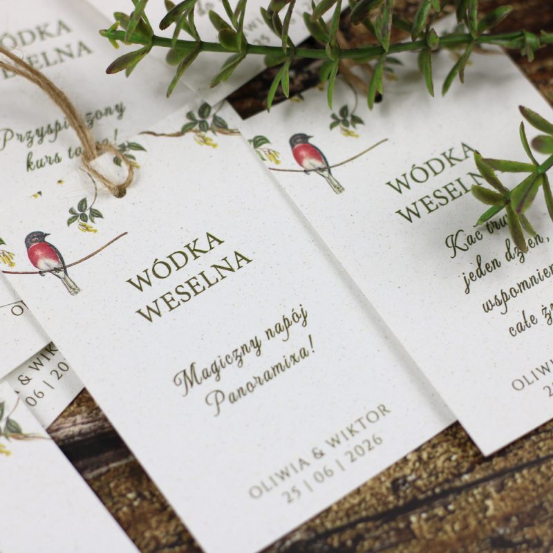 15.20 złZawieszka na alkohol z kolekcji Eloise, wykonana z kremowego gładkiego papieru i ozdobiona satynową wstążką. Styl angielskiej elegancji i romantyzmu.
