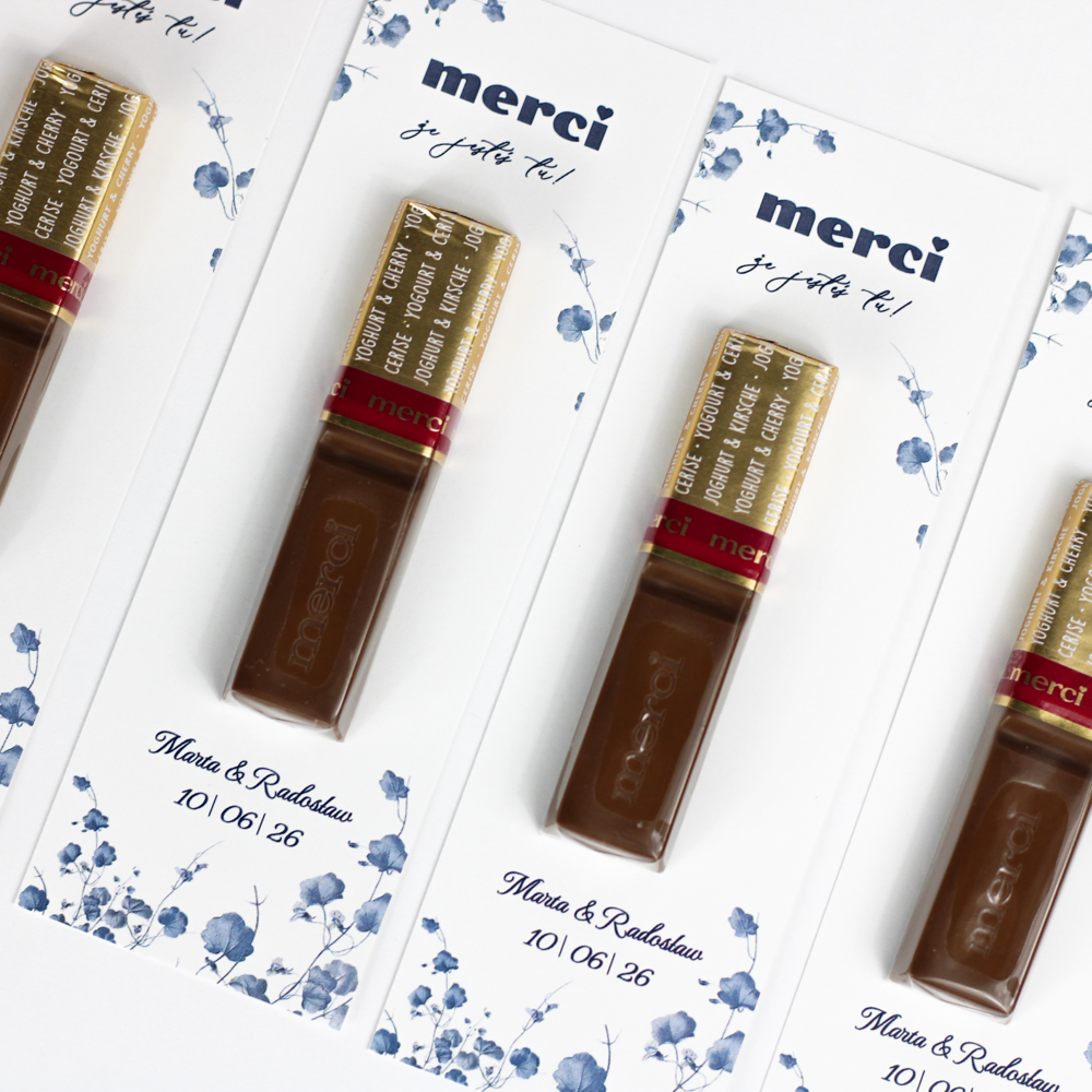 • Dodatkowo: pasek z klejem do przyklejenia czekoladki