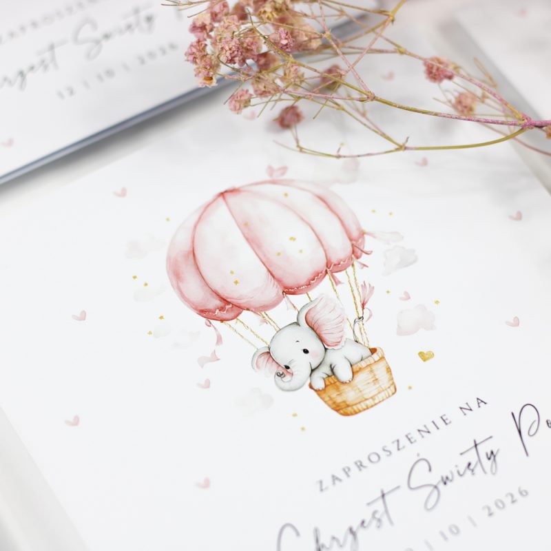 Zaproszenie “KARMEL” zachwyca delikatnymi odcieniami złota, beżu i brązu. Główną ozdobą jest uroczy motyw tęczy. Dopełnieniem całości jest złota kokardka – mały, ale stylowy akcent!